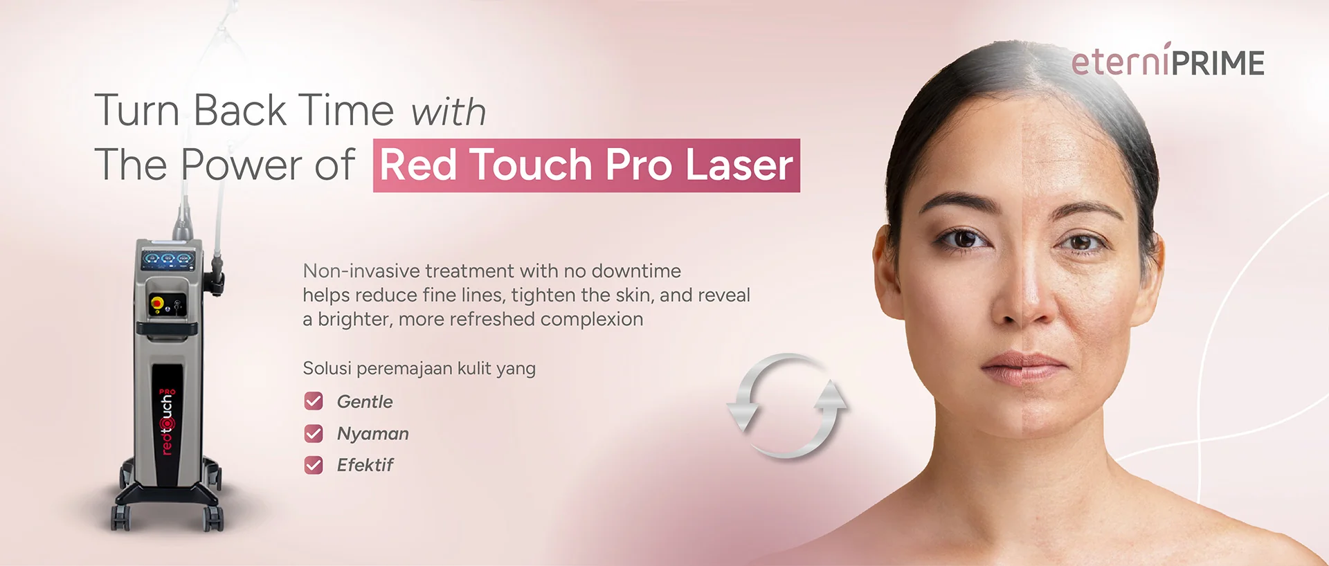 “Eterniskin berkomitmen untuk menjadi klinik kesehatan kulit yang terpercaya dengan memberikan proses perawatan yang benar untuk membantu Anda mencapai hidup yang bahagia.”